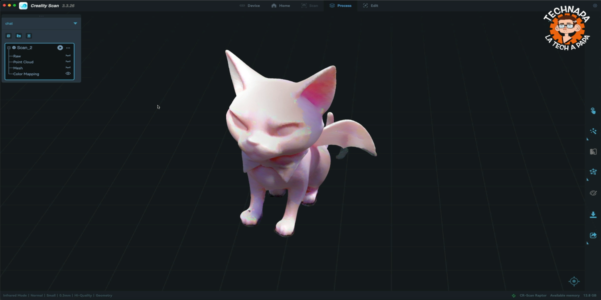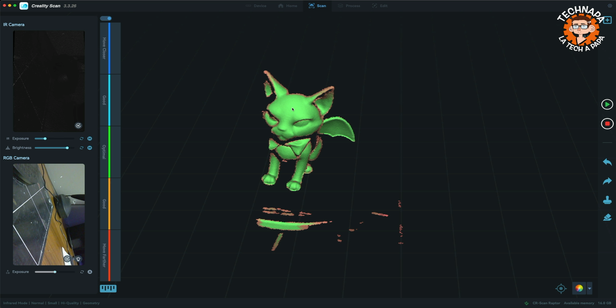 Pour mon premier essai, j’ai scanné une figurine de chat vampire. J’ai opté pour le mode infrarouge, car je voulais voir ce que le scanner pouvait faire sans marqueurs.
