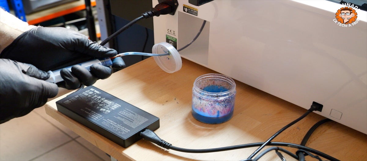 Consommables onéreux : les encres pigmentées, la poudre et les films PET coûtent sensiblement plus cher que les fournitures d’un transfert jet d’encre classique.