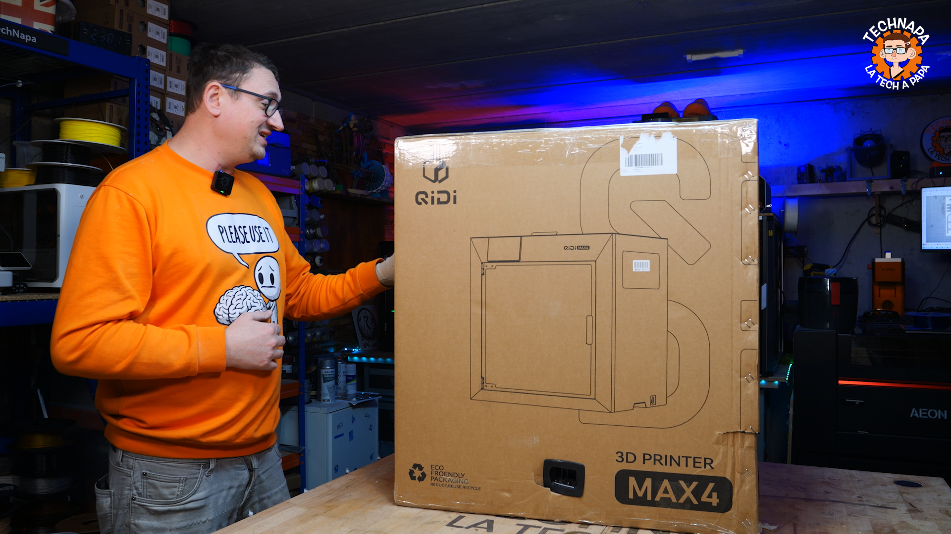 La Qidi X-Max 4 est arrivée dans l'atelier dans un carton imposant de 57 kg, mesurant 70 × 70 × 75 cm. Autant dire que le déballage lui-même donne le ton : on est face à une machine de gabarit sérieux, clairement positionnée au-dessus des imprimantes grand public classiques. J'avais déjà aperçu cette machine lors du salon Formnext en Allemagne, et c'est avec une curiosité bien entretenue que j'ai pu enfin la tester en profondeur sur plusieurs semaines.